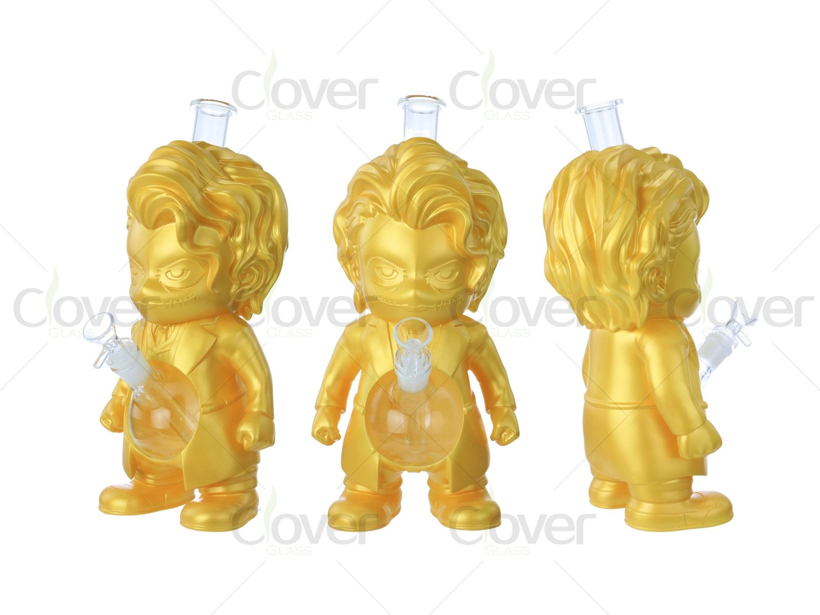 Bring attitude and style to your smoking setup with this bold, gold character-shaped water pipe! Standing at 11.81 inches tall and made of durable PVC with a glass bowl, this unique design blends striking visual appeal with reliable performance.