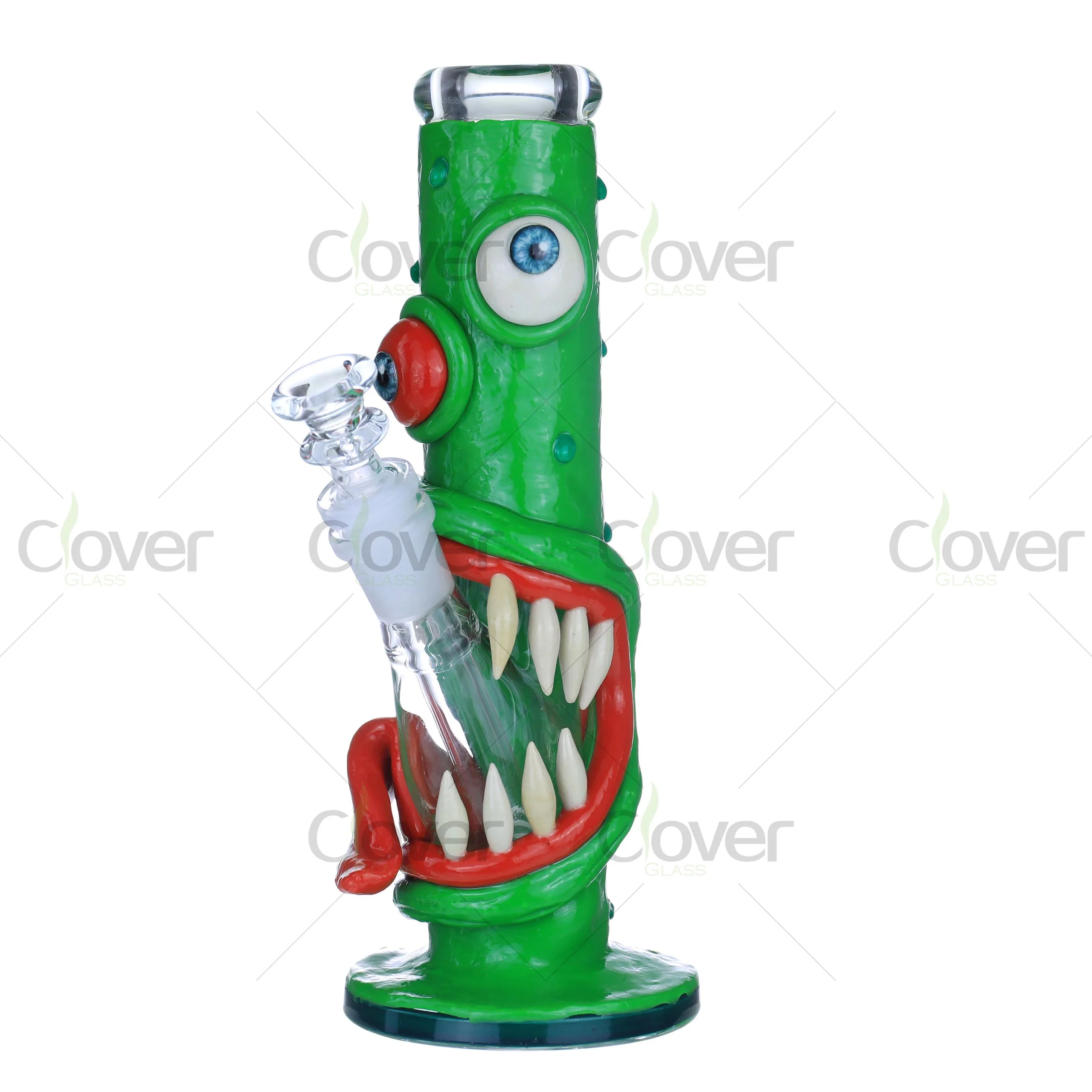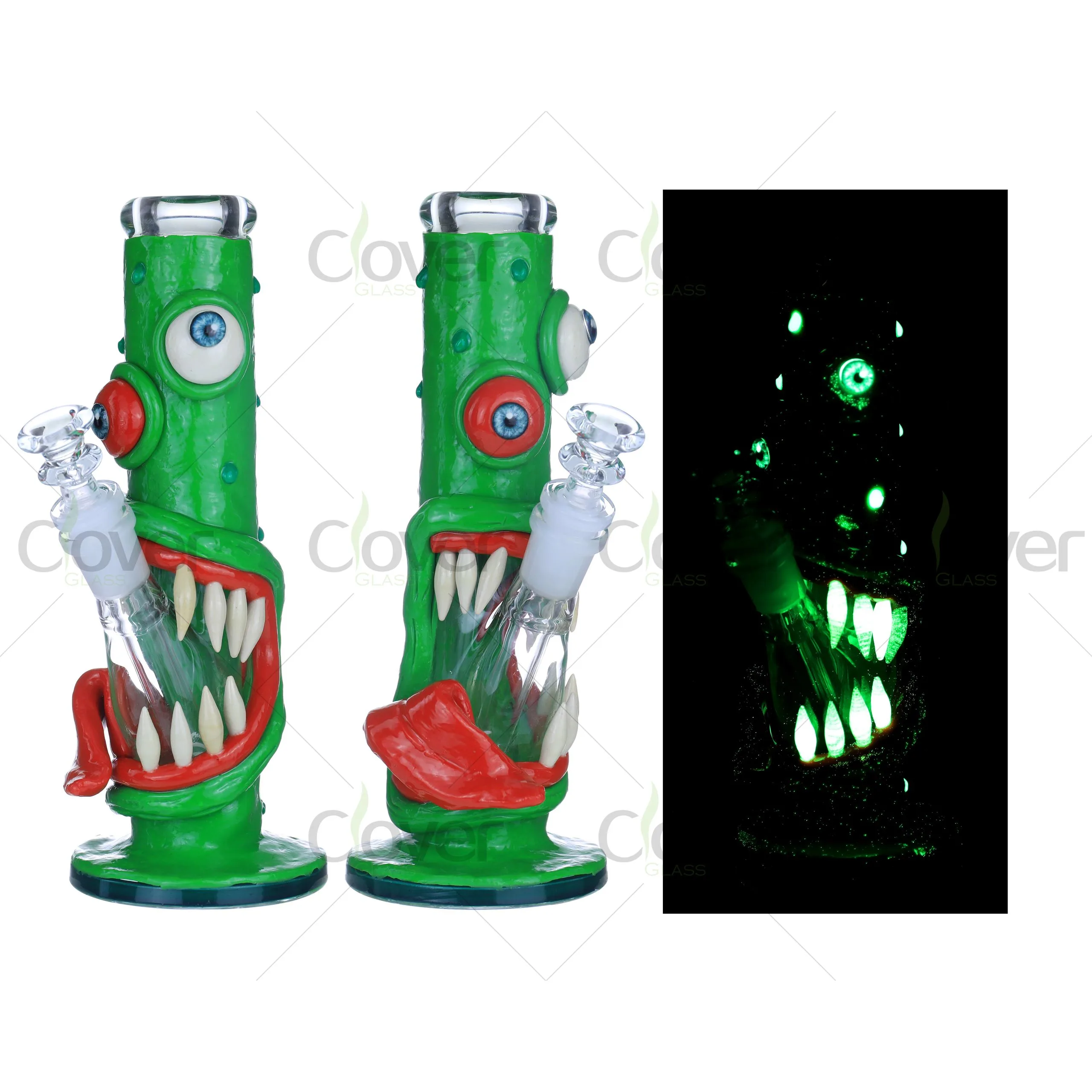 The green monster bong is a fun, eccentric piece packed with personality. With multiple 3D eyes, exaggerated facial features, and glow-in-the-dark teeth, it’s designed to catch attention both in daylight and in dark settings. Its playful tongue and detailed paintwork add extra flair, while the 5mm borosilicate glass ensures strength and quality.