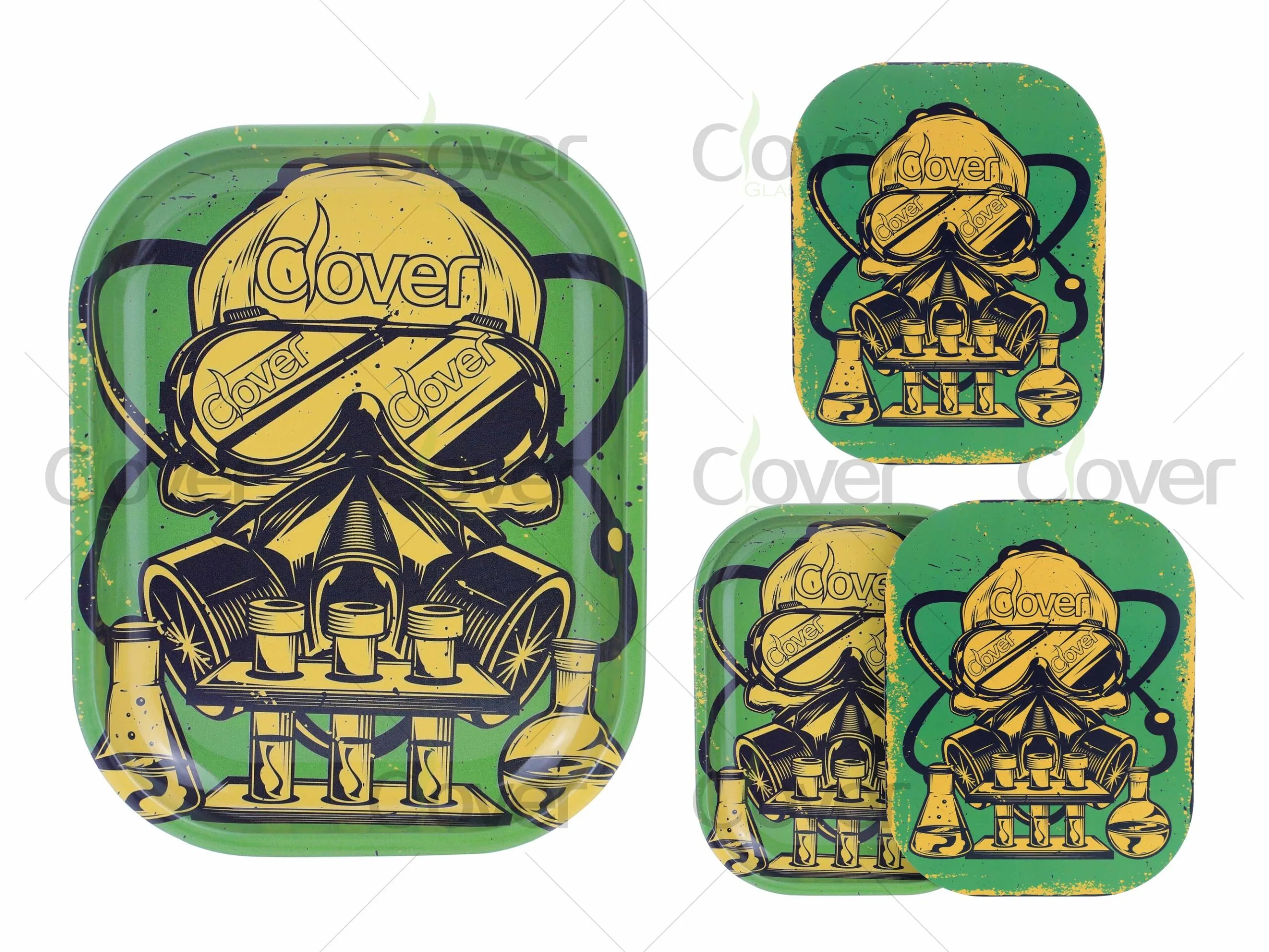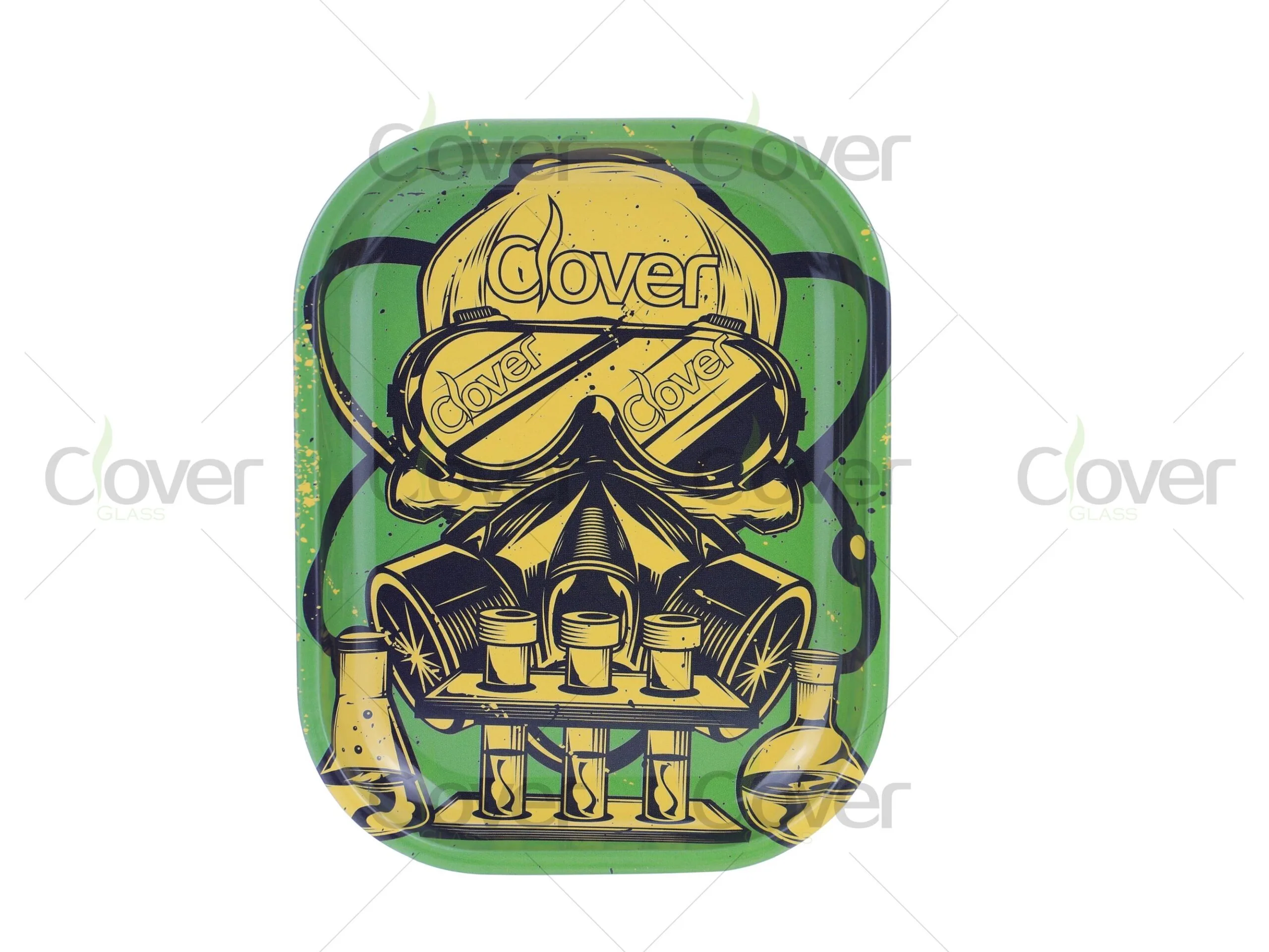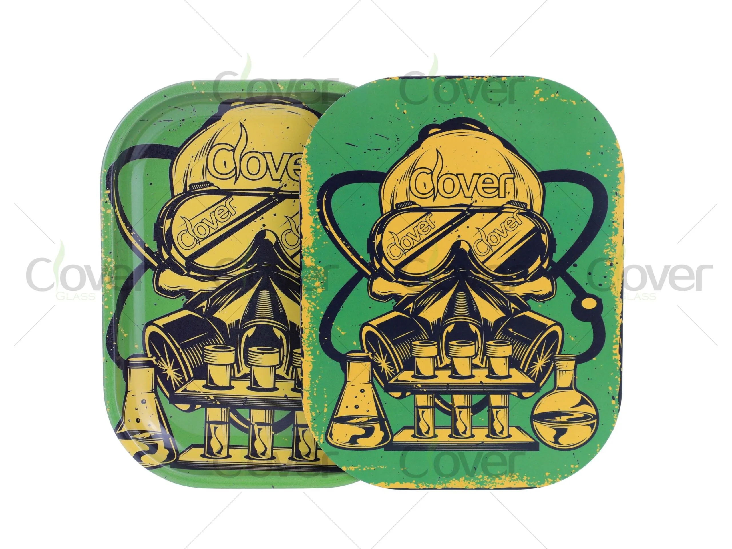 Step into the lab with this high-voltage design! The Lab Skull Rolling Tray Set by Clover Glass features a detailed yellow skull in a gas mask, surrounded by bubbling beakers and test tubes — all set on a vivid green background. Perfect for fans of science themes, “mad scientist” aesthetics, or high-concept 420 gear.