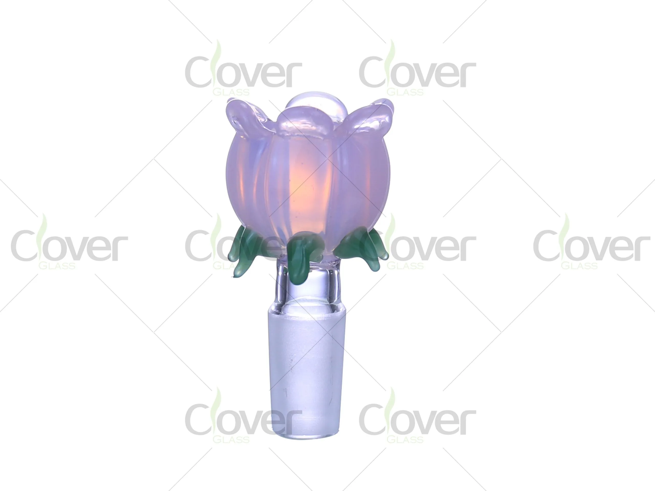 Add a touch of nature and elegance to your smoking setup with the Clover Glass Lotus Flower Glass Bowl! This beautifully handcrafted bowl mimics the delicate petals of a blooming lotus, bringing a serene and artistic aesthetic to any water pipe.