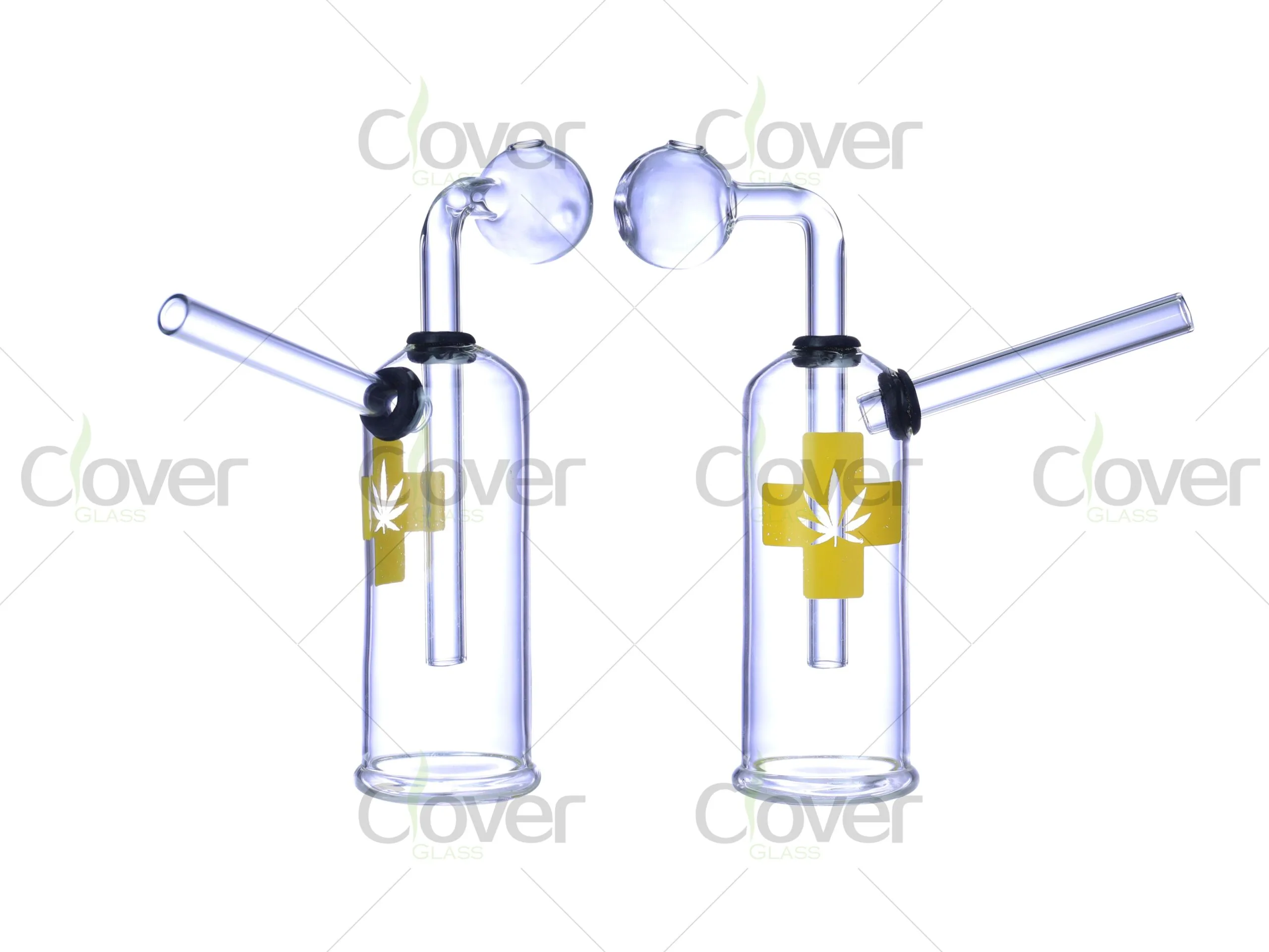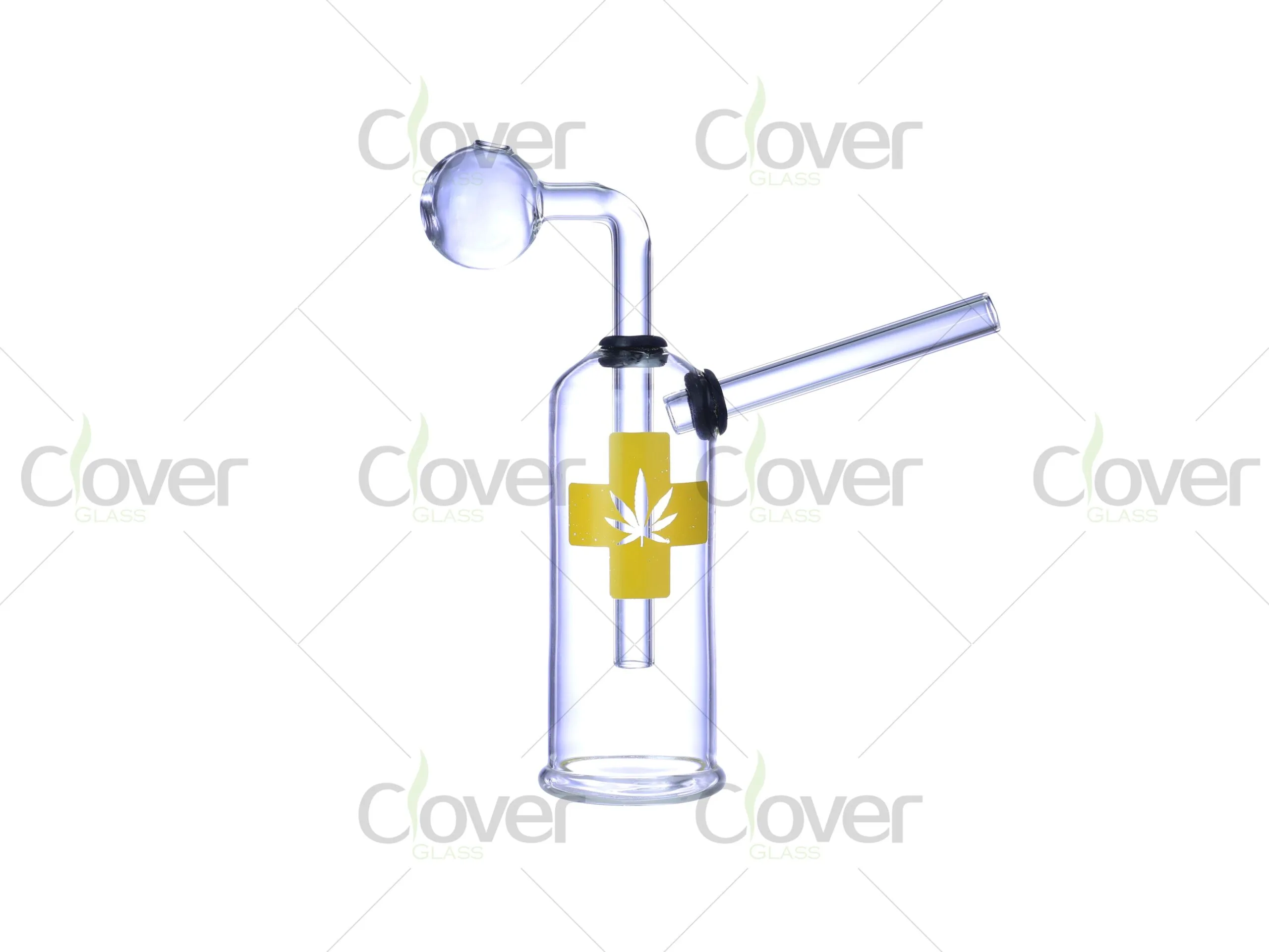 This medical cross oil burner pipe blends clean, minimalist design with functionality ideal for concentrate users. The transparent chamber is crafted from thick borosilicate glass and decorated with a bold yellow cross featuring a white cannabis leaf—a perfect nod to medical-use branding.
