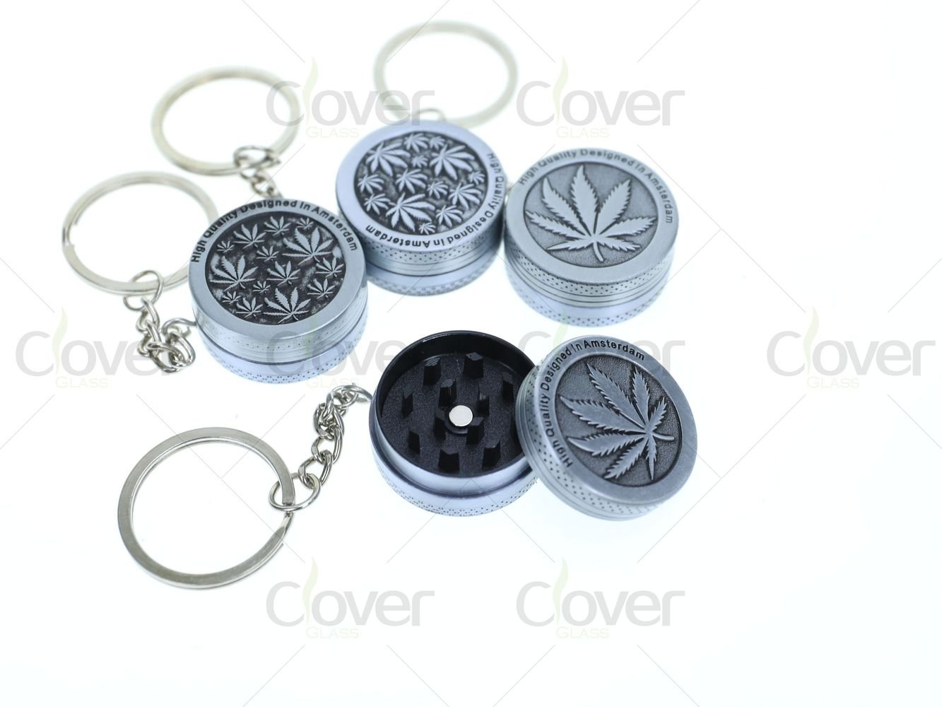 Experience ultimate convenience with our Mini Aluminum Alloy Herb Grinder Keychain, perfect for on-the-go use. Designed in Amsterdam, each grinder showcases stylish cannabis leaf engravings, making it both practical and eye-catching.