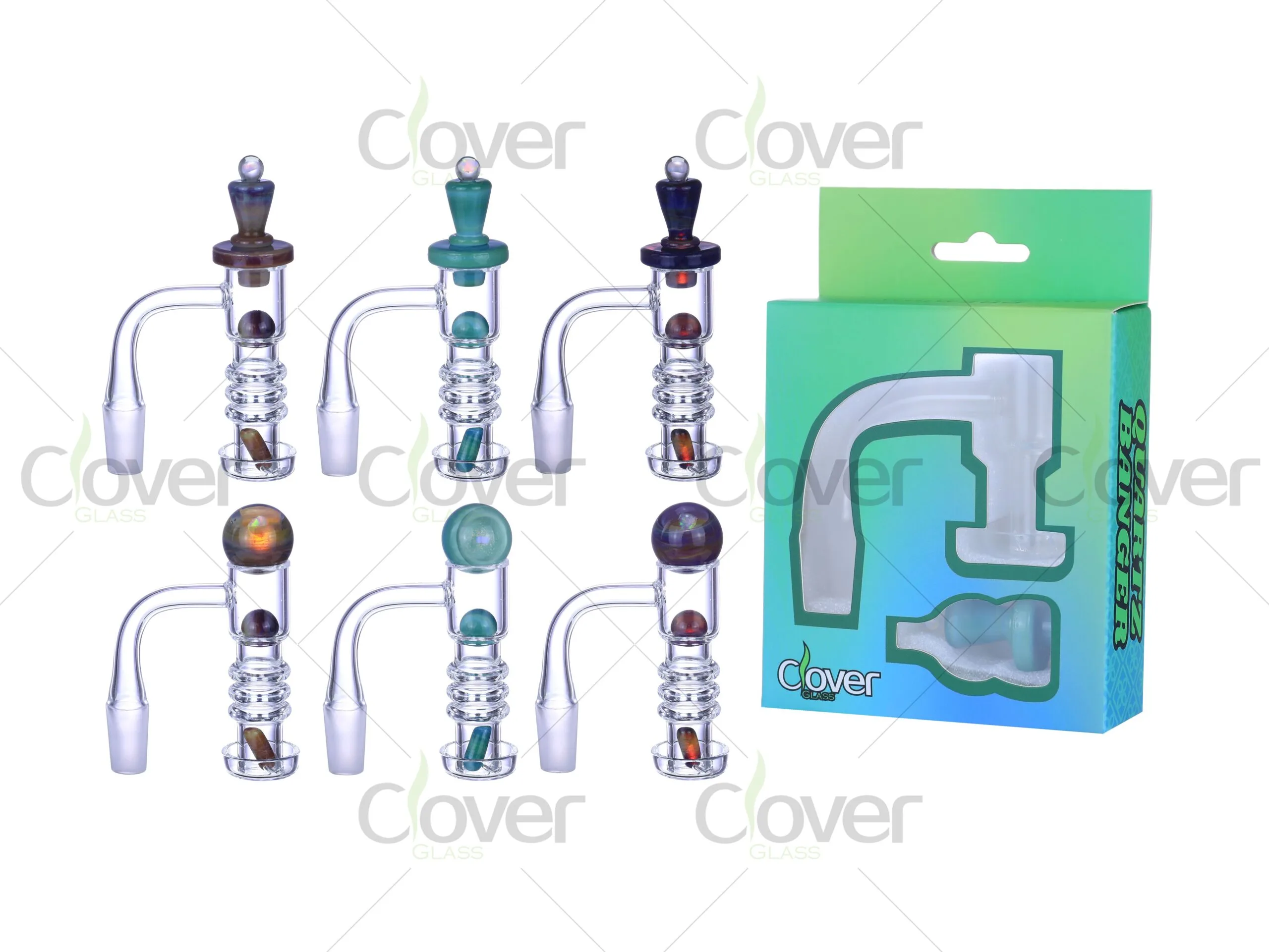 Experience smooth, flavorful dabs with the Opal Marble Quartz Banger Kit by Clover Glass — a premium set designed for consistent heat and airflow control.