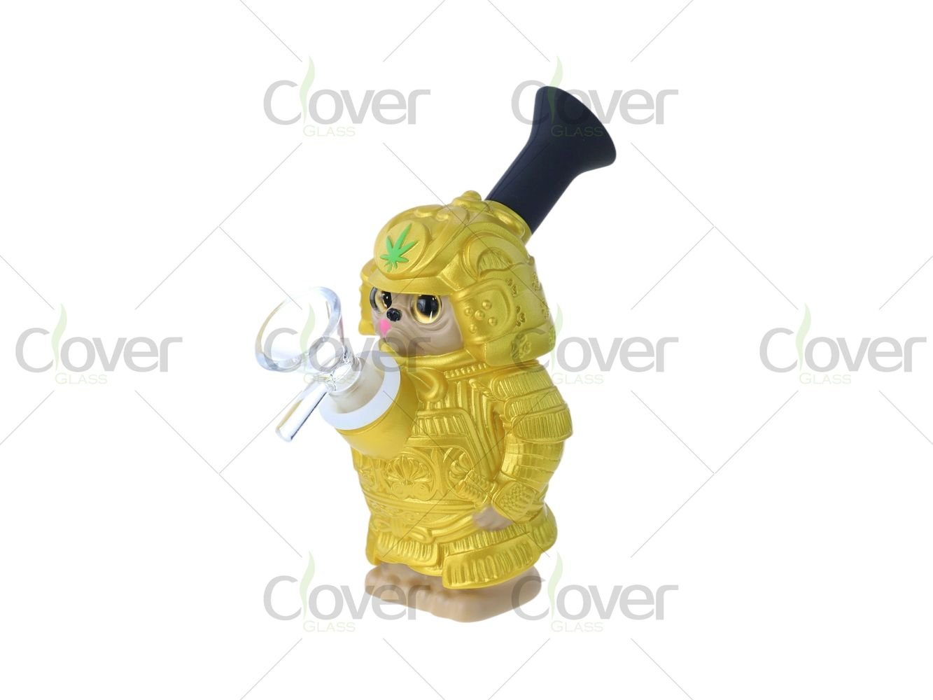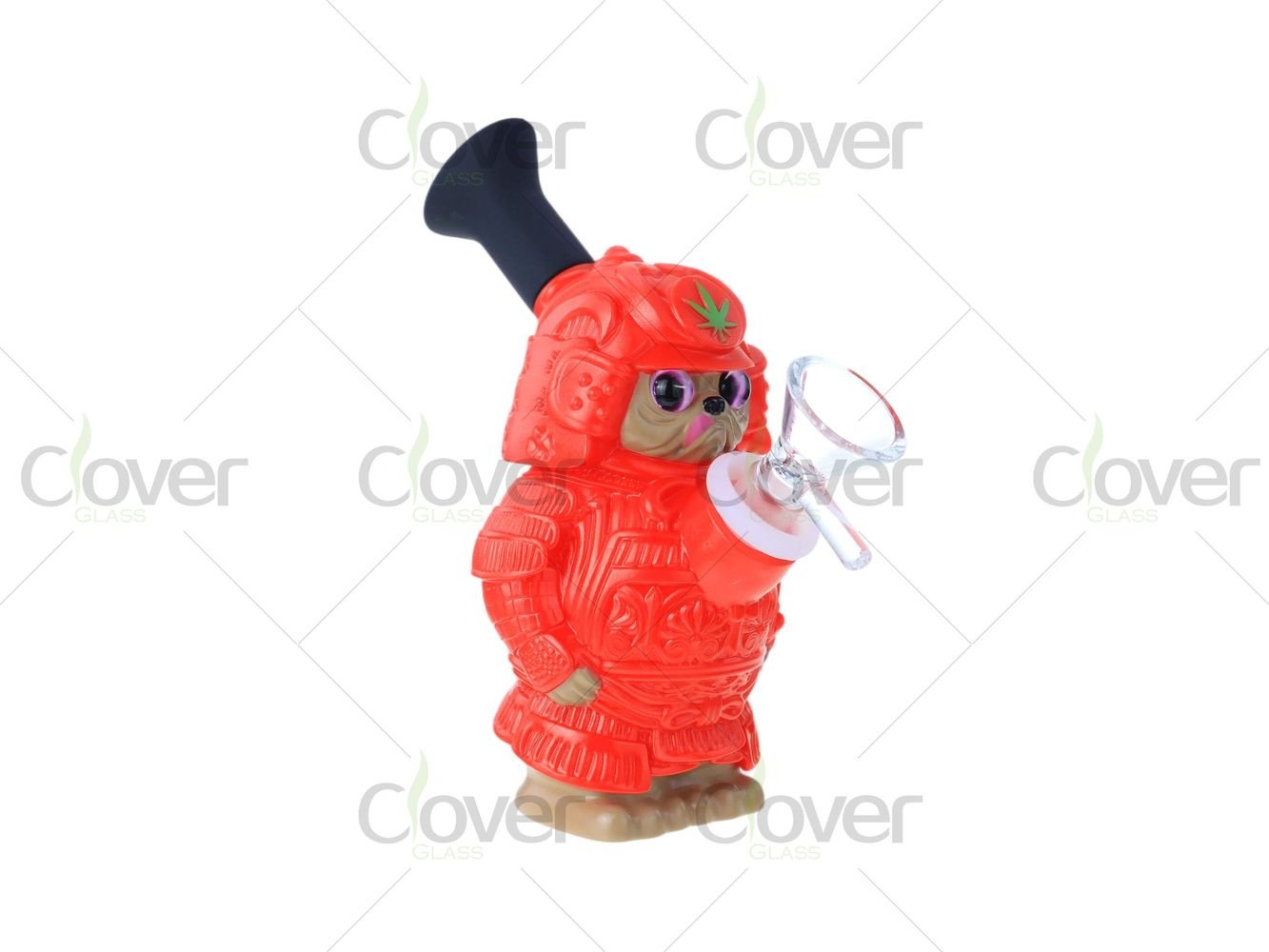 Samurai Cartoon Silicone Water Pipe with Glass Bowl, PVC Body, Compact 145mm Design