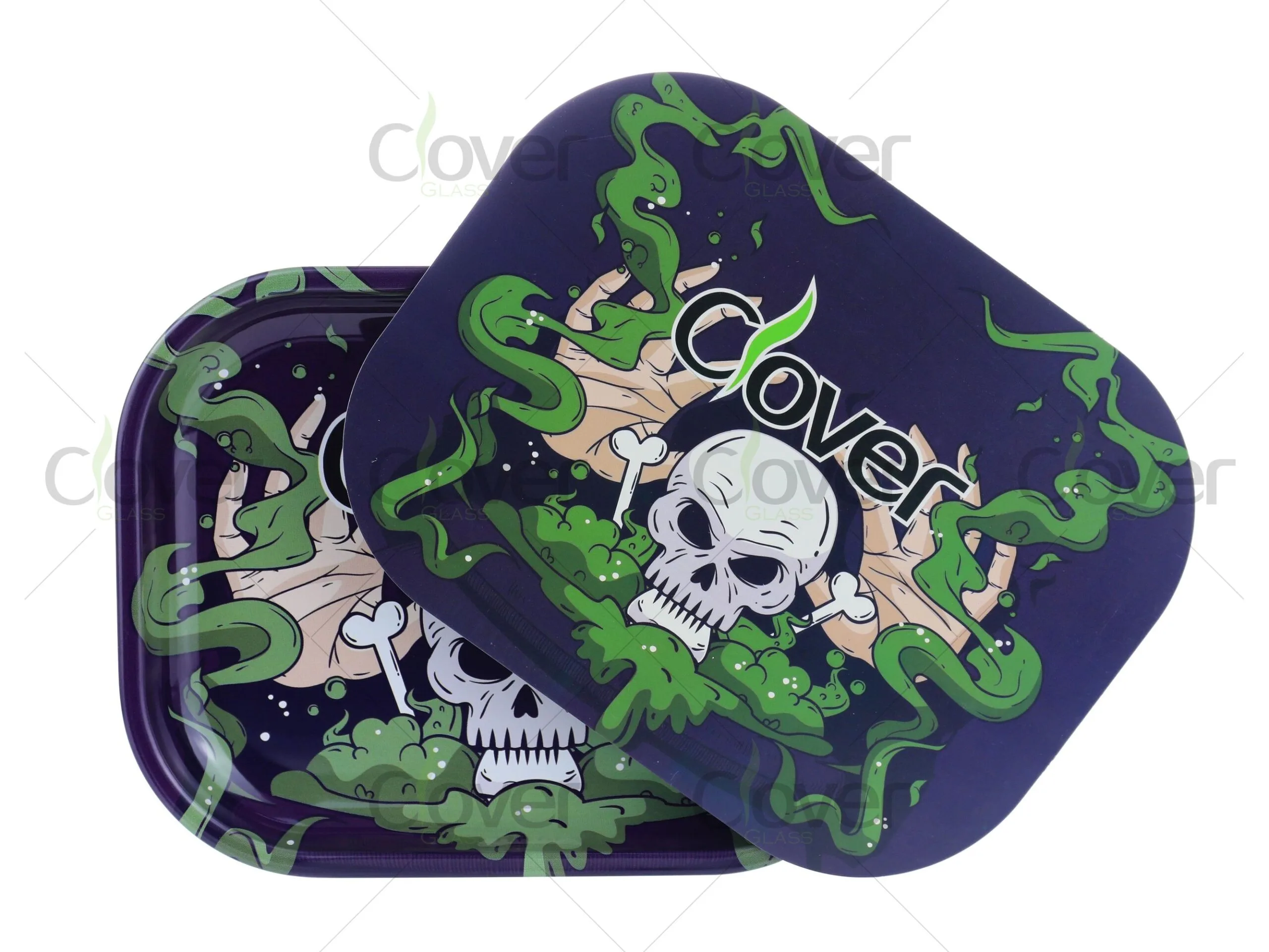 Dark, trippy, and totally badass — the Toxic Skull Rolling Tray Set by Clover Glass brings eerie energy to your product lineup. With glowing green smoke, a rising skull, and muted purple background, this tray set is made for fans of goth, vaporwave, and Halloween-style aesthetics.