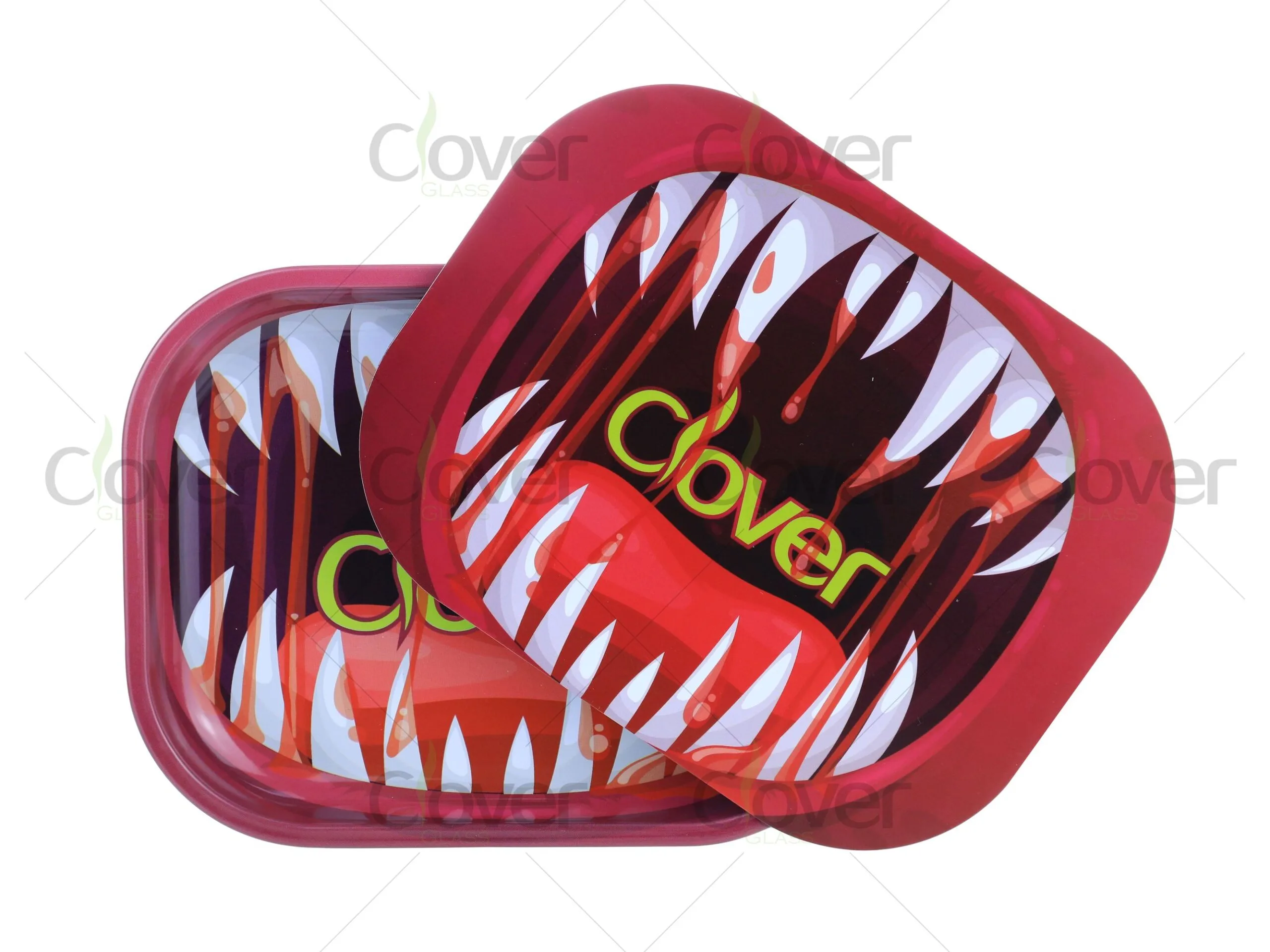 Make a bold statement on your shelves with the Blood Fang Rolling Tray Set by Clover Glass. This collection includes multiple tray sizes (small, medium, large) featuring the same dripping fang-mouth artwork — a fan favorite among edgy, horror-inspired smokers.