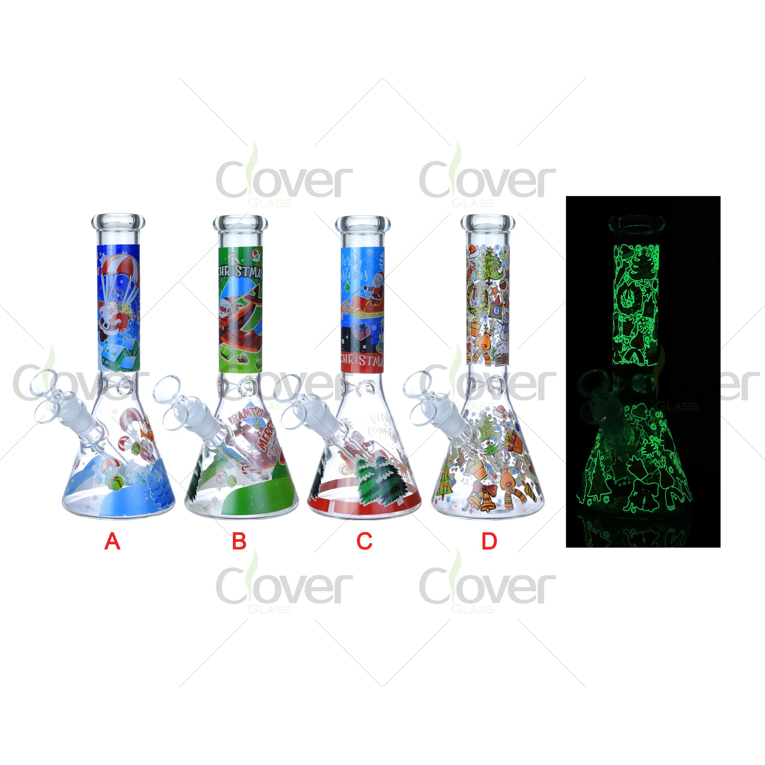 Wholesale Christmas Glow-in-the-Dark Bong – 10 Inch Holiday Beaker Water Pipe for Smoke Shops